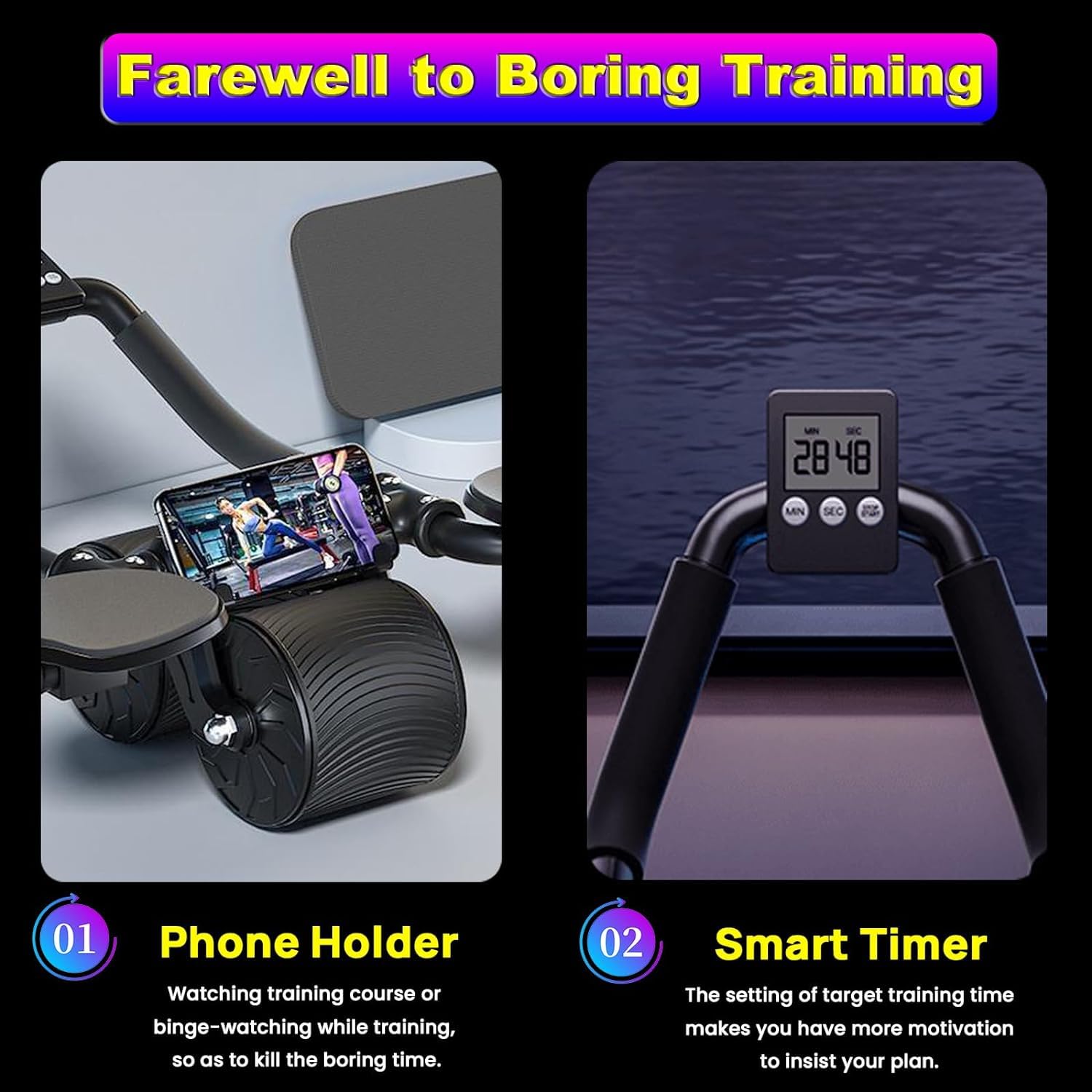 MAHVIW Automatic Rebound Abdominal Wheel with Elbow Support and Timer – Ab Wheel Roller,Ab Abdominal Exercise Roller for Home Gym,Ab Roller Workout Equipment for Men Women