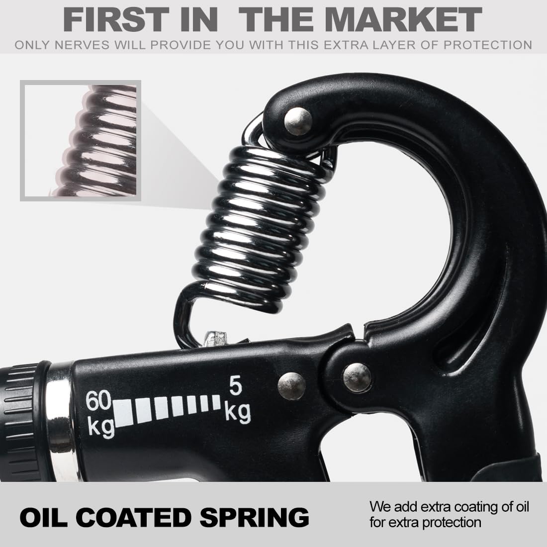 Our Hand Gripper is designed with an extra layer of oil coating to protect the metal spring from damage or rust, extending its lifespan.