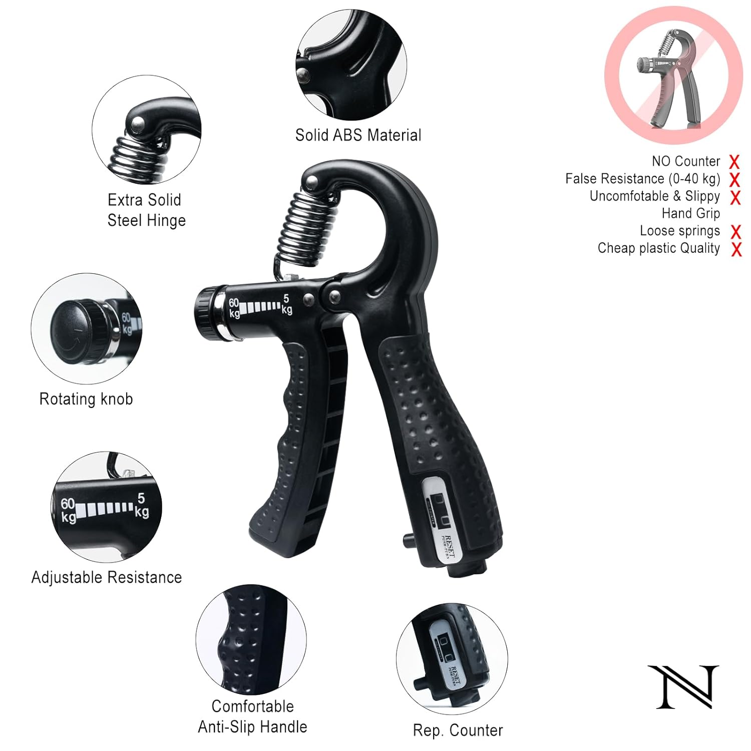 Be the first to review “NERVES Adjustable Hand Gripper Set of 3 with Counter Finger Gripster & Wrist Strengthener for Veins Forearm Exercise Equipment Gym & Home Workout Grip Tool Kit wrist Hand Gripper (BLACK)”