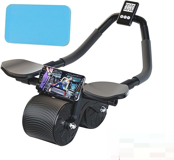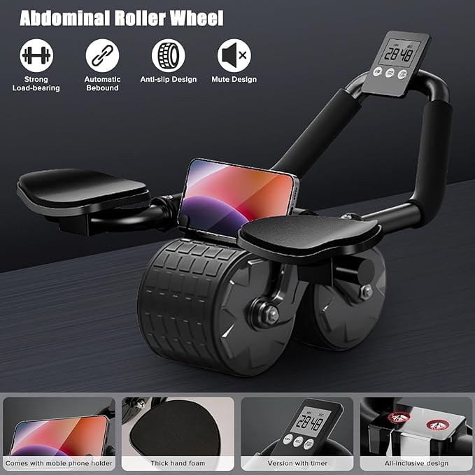 RELEMTRA Dual Exercise Roller Wheels with Timer,Non-Slip Automatic Abdominal Rebound Wheel,Ab Roller with Elbow Support,Wheel Fitness Equipment for Core Workout,Core Fit Rolle