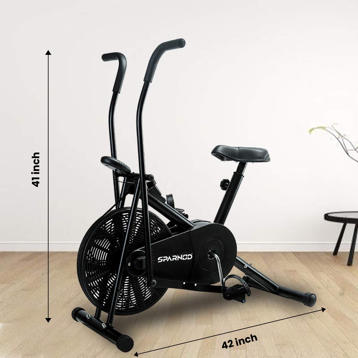 SPARNOD FITNESS SAB-06 Upright Air Bike Exercise Cycle for Home Gym – Dual Action for Full Body Workout – Adjustable Resistance, Height Adjustable seat, Without Back Rest (DIY Installation)