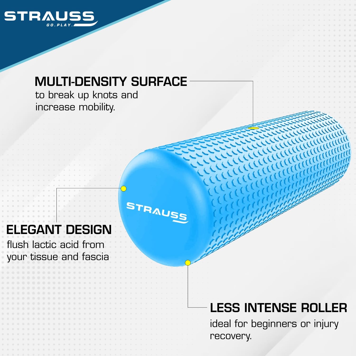 COMFORTABLE & LIGHTWEIGHT: The Strauss dotted EVA foam roller is a uniquely soft massager that conforms gently to your body contours, but still offers medium resistance for amazing performance. Our lightweight fitness roller is easy to travel with due to its weight and sturdiness.